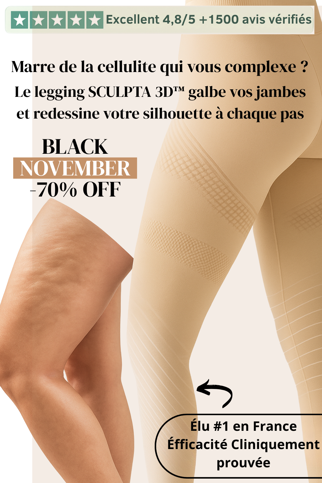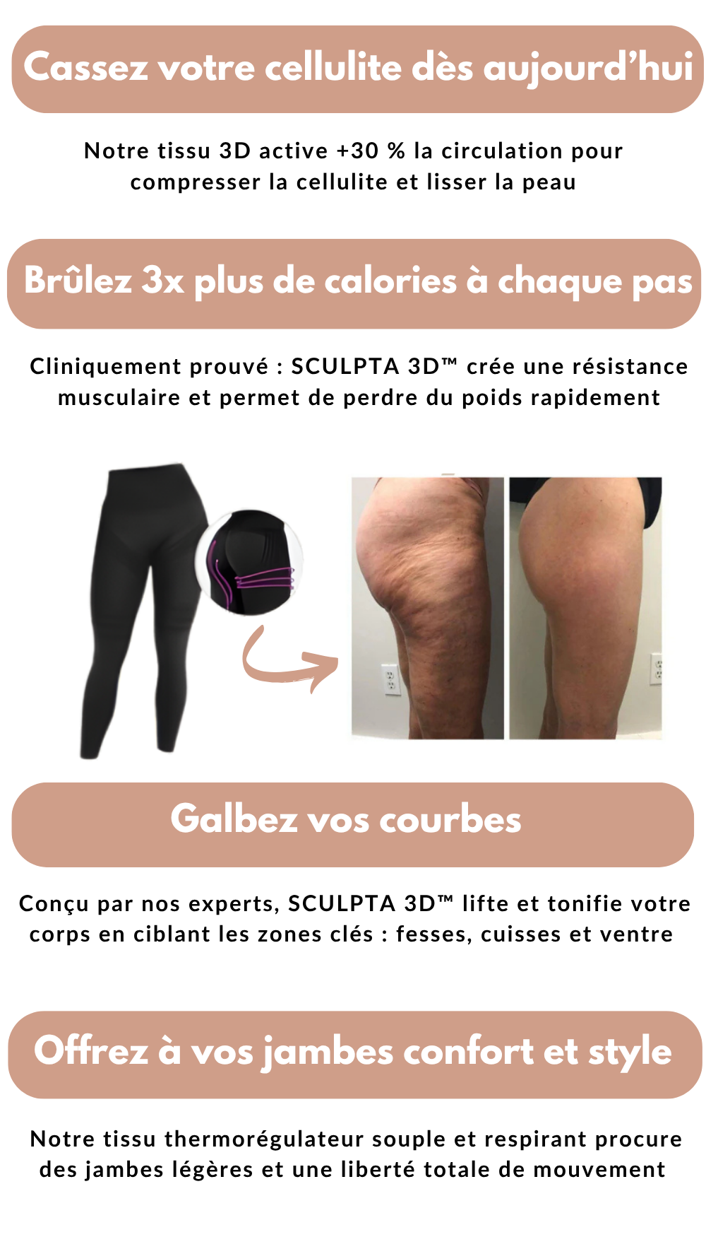 “Je ne pensais pas qu’un simple legging pouvait avoir autant d’impact. En quelques jours, mes jambes sont plus légères et ma peau plus lisse. Même mon entourage l’a remarqué !”