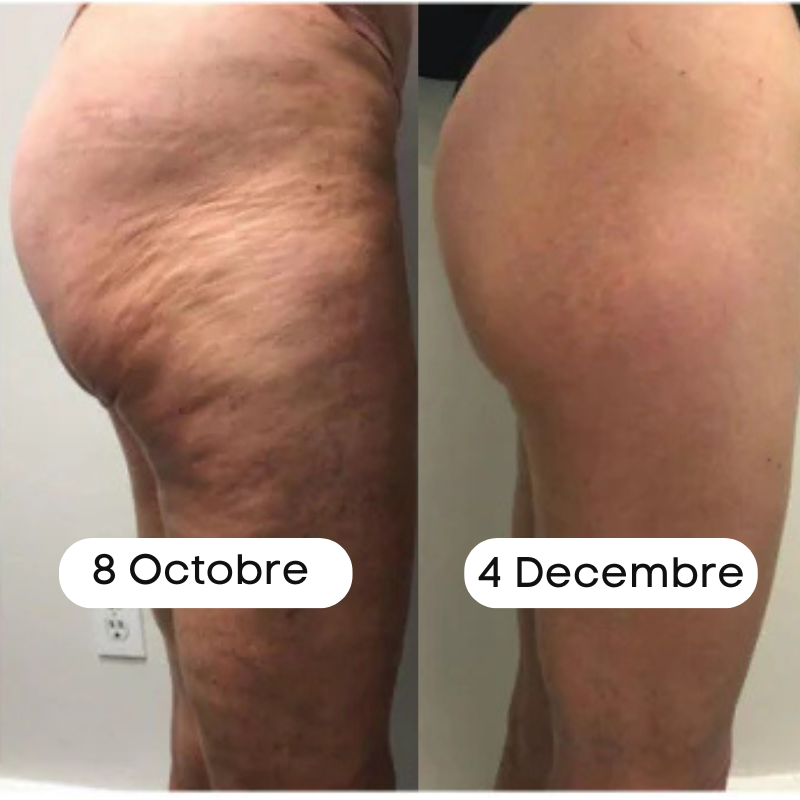 Résultat : des jambes plus lisses, une peau raffermie et une silhouette visiblement affinée.